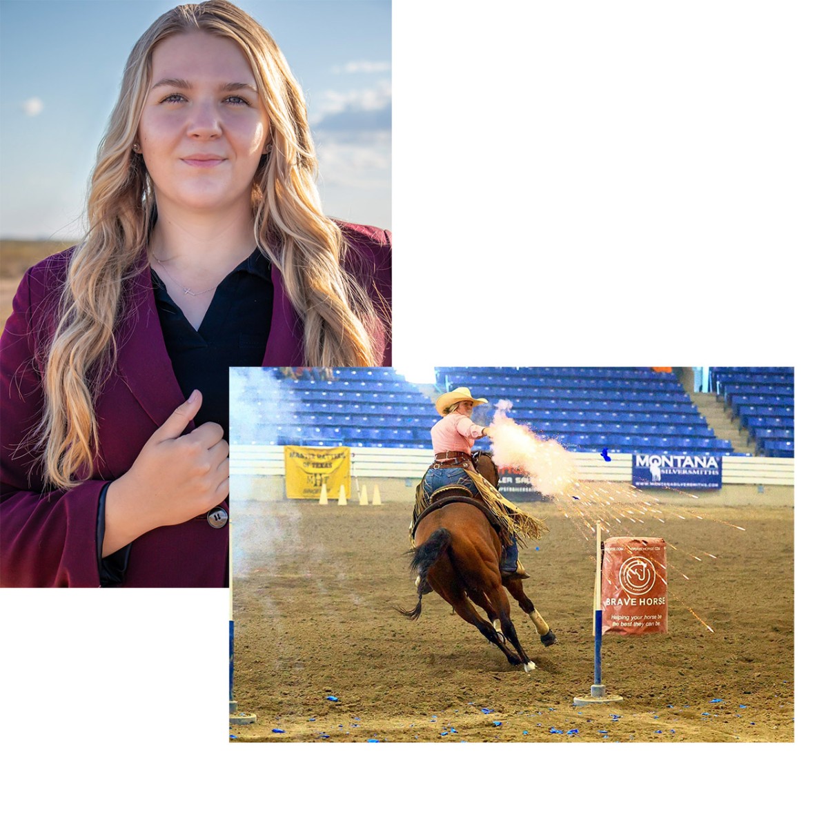 Keeping in the spirit of our cowgirl aviatrix theme, Mallory is a student pilot with a lifelong passion for aviation and a deep appreciation for the view from the sky. Her journey began long before flight school—traveling extensively across the U.S. as an athlete in the sport of cowboy mounted shooting, where she competed in multiple national and world championships and earned numerous titles. That same drive and focus now fuels her pursuit of a career in aviation.